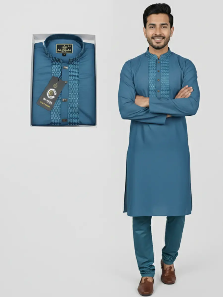Men’s Premium Stitched Teal Blue Cotton Panjabi