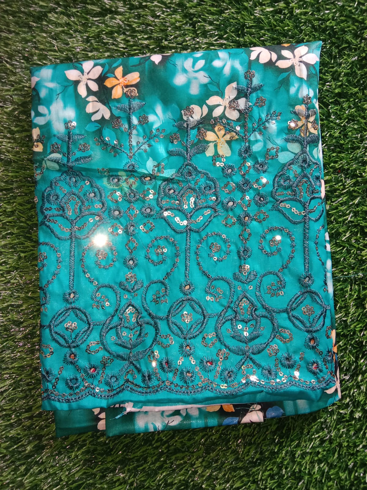 Be the first to review “Eid Special/Vibrant Teal Floral Printed 3-Piece Cotton Suit”