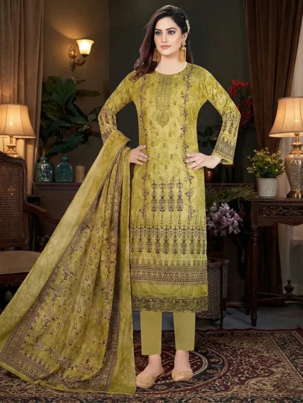 Olive Heritage Embroidered Three Piece Collection