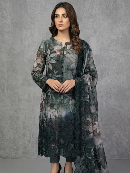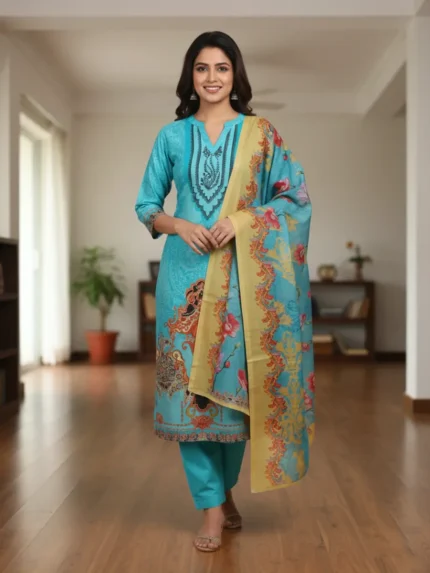 Turquoise Bloom A-Grade Lawn Digital Print 3-Piece